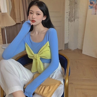 Áo thun tay dài màu sắc đơn giản phong cách Hàn Quốc thời trang dành cho nữ