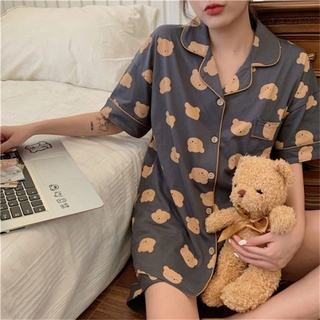 Bộ đồ ngủ ngắn tay in họa tiết hoạt hình độc đáo phong cách Hàn Quốc thời trang mùa hè cho nữ