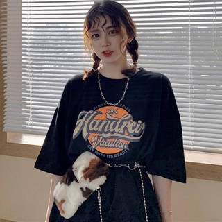 Áo thun tay ngắn cổ tròn dáng rộng in họa tiết kiểu retro Hàn Quốc thời trang mùa hè cho nữ