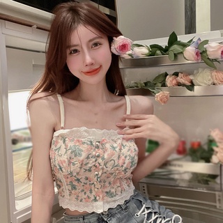 Áo Croptop Hai Dây Phối Ren Hoa Thời Trang Hàn Quốc Ngọt Ngào Cho Nữ