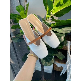 Dép Sục Nữ Da Mềm Đế Bằng Mũi Vuông Phong Cách Retro Hàn Quốc 2022