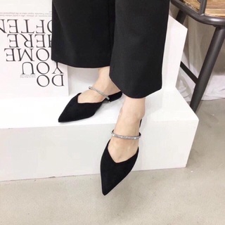 Dép Sục Nữ Mũi Nhọn Quai Ngang Đính Đá