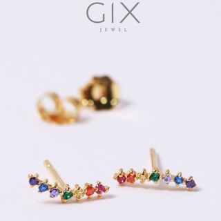 Bông tai bạc cao cấp đẹp cho nữ mạ vàng đính đá cầu vồng đẹp lạ Gix Jewel SPGBT17