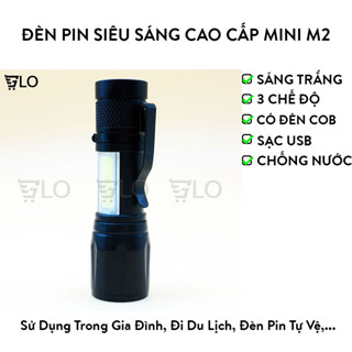 Đèn Pin Siêu Sáng Cao Cấp Mini M2, Có Zoom, 3 Chế Độ Sáng, Có Đèn COB Bên Hông, Kèm Dây Sạc Fullbox