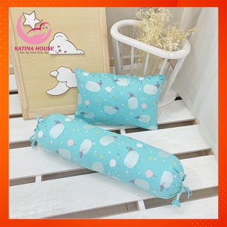 Bộ gối nằm và gối ôm cho bé gòn lông vũ, vải Cotton Satin Hàn Quốc êm mềm mát, giúp bé ngủ sâu ngủ ngon