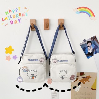 Túi canvas đeo chéo mềm mại họa tiết gấu nhỏ thời trang Harajuku Nhật Hàn đáng yêu cho nữ