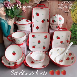 Bộ bát đĩa dâu tây đỏ 9 món cực sang chảnh 2