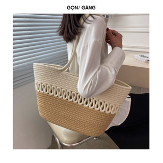 Túi cói size to đi biển đi du lịch mẫu mới vintage túi bảng to túi đeo vai nữ phong cách Hàn Quốc túi canvas Gọn Gàng