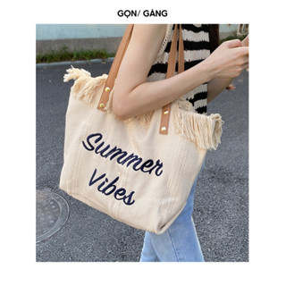 Túi canvas túi du lịch size to cỡ lớn vải bố vintage summer vibes túi đi biển sống ảo túi đựng quần áo đi chơi Gọn Gàng