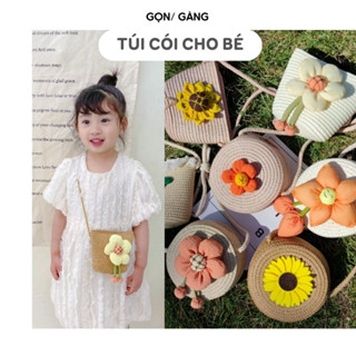 Túi cho bé đeo chéo mini túi cói du lịch đi biển bé gái cute dễ thương thỏ bông gấu dâu hoạt hình có khóa Gọn Gàng