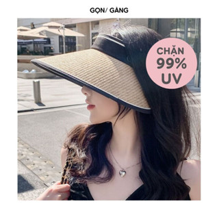 Mũ cói đi biển chống nắng nón nửa đầu đi du lịch mũ chóp che nắng chống tia UV có thể gấp gọn có dây Gọn Gàng