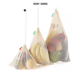 Túi lưới túi đi chợ đựng thực phẩm dạng lưới dày dặn dây rút thay thế túi nilon tiện lợi đựng hoaquả hành tỏi Happybirds