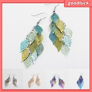 Goodluck| 1 Đôi Bông Tai Dáng Dài Hình Chiếc Lá Sáng Tạo Thanh Lịch Cho Nữ
