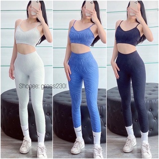 Bộ quần áo tập gym nữ dệt gân áo bra + quần legging