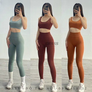 Set đồ tập gym yoga Grass Oxygen áo croptop + quần dài hàng cao cấp vải mềm mịn thấm hút