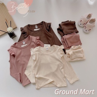 Bộ quần áo dài tay thu đông cho bé gái trơn màu chất thun tăm cotton mềm mịn size từ 6 - 15 kg (M02)