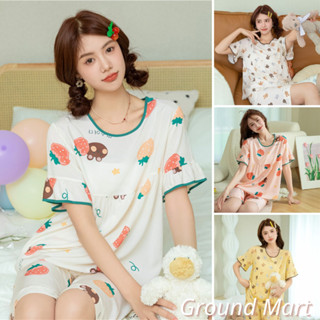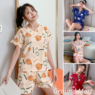 Bộ đồ ngủ nữ, bộ lụa cộc tay cổ V mặc nhà mềm mát, nhiều màu, họa tiết dễ thương size từ 45 - 75 kg