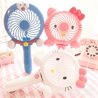 Quạt tích điện mini cầm tay 2 tốc độ gió siêu mát hình Doremon/ Kitty cute