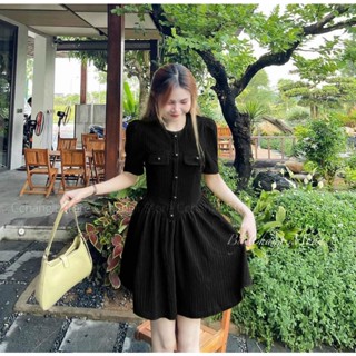 Đầm sơ mi tay ngắn cài nút có túi ngực xinh xắn
