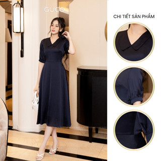 Đầm gấm chữ A kết nút 3895 GUCO Vàng