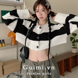 Áo cardigan NZN dệt kim cổ tròn họa tiết kẻ sọc phối nút thời trang mùa thu cho nữ