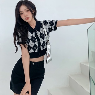 Áo cardigan crop top NZN dệt kim họa tiết kẻ sọc ca rô phong cách vintage thời trang mùa hè dành cho nữ