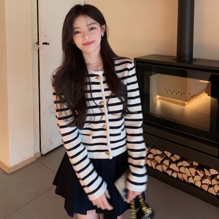 Áo khoác cardigan dệt kim NZN cổ tròn kẻ sọc caro 4 màu lựa chọn phong cách Hàn Quốc thời trang cho nữ
