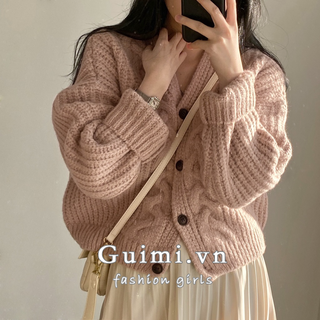 Áo khoác cardigan NZN dệt kim tay dài dáng rộng phong cách cổ điển Hàn Quốc có 3 màu lựa chọn