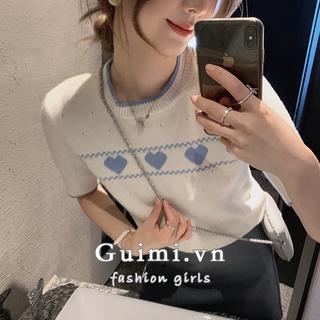 Áo dệt kim NZN ngắn tay cổ tròn hình trái tim thời trang Hàn Quốc 3 màu cho nữ