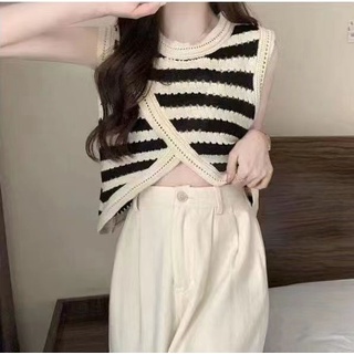 Áo dệt kim NZN không tay họa tiết kẻ sọc phong cách Hàn Quốc thời trang