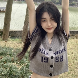 Áo cardigan NZN ngắn tay cổ chữ V in chữ phong cách Hàn Quốc thời trang cho nữ
