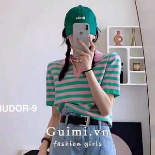 Áo thun polo NZN ngắn tay ôm dáng họa tiết kẻ sọc thời trang mùa hè phong cách Hàn Quốc cho nữ