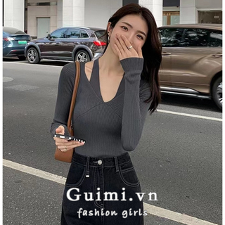Áo Dệt Kim Tay Dài Cổ Chữ V Dáng Ôm Thời Trang Mùa Thu Cho Nữ