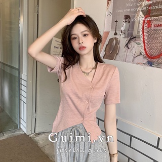 Áo croptop NZN tay ngắn cổ chữ V phong cách Hàn Quốc thời trang mùa hè