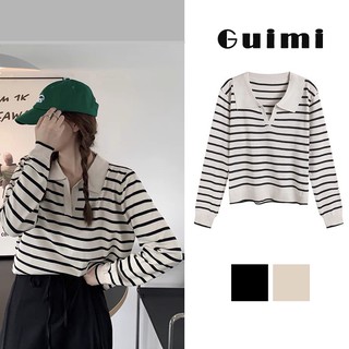 NZN Áo Thun Dệt Kim Tay Dài Cổ Chữ V Dáng Rộng Hàn Quốc áo sọc ngang