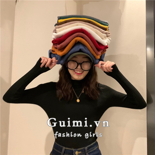 12 Màu Có Sẵn | Áo sweater Tay Dài Cổ Cao Màu Sắc Đơn Giản Cho Nữ