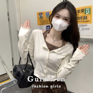 Áo thun NZN dài tay cổ treo giả hai lớp phong cách Hàn Quốc thời trang cho nữ