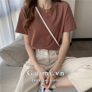NZN Áo Thun Ngắn Tay Màu Trơn Phong Cách Hàn Quốc Cho Nữ