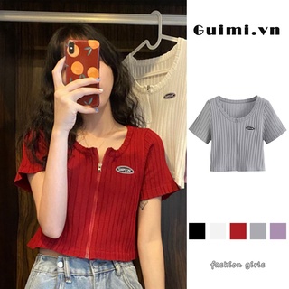 Áo Thun Croptop Tay Ngắn Dáng Ôm Màu Tương Phản Thời Trang Mùa Hè Mới Cho Nữ