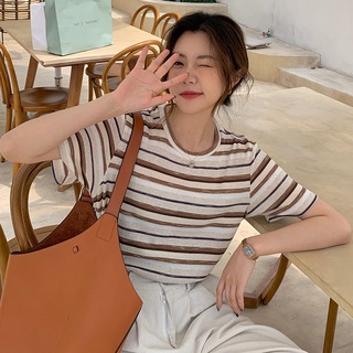 Áo Thun Nữ Tay Ngắn Kẻ Sọc Ngang Màu Sắc Trẻ Trung Thời Trang