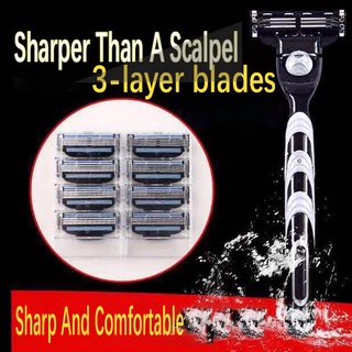 Dao cạo râu 3 lưỡi loại tốt ( Combo 1 Cán + 8 lưỡi)