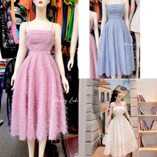 Đầm xòe dáng dài hai dây lông vũ cao cấp cho nàng mặc đi chơi thanh lịch,dịu dàng