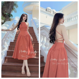 Đầm dáng xòe thiết kế cổ yếm siêu xinh cho bạn nữ mặc đi chơi chụp cảnh 2 màu nổi bật như mẫu