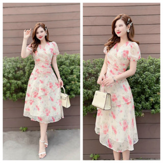 Đầm Nữ Đầm Bông Sương Xếp Tầng Tay Lửng,Màu Sắc Nhã Nhặn Thật Sự Phù Hợp Để Tới Công Sở, Đi Làm Hoặc Đi Chơi