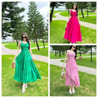 Đầm maxi nữ xòe thiết kế 2 dây 3 màu y hình duyên dáng mặc đi dã ngoại , chụp cảnh