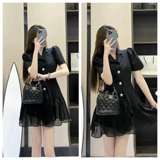 Đầm xòe nữ chất liệu thun phối voan đính nút kiểu vest sang trọng pha chút dễ thương cho bạn nữ mặc đi chơi