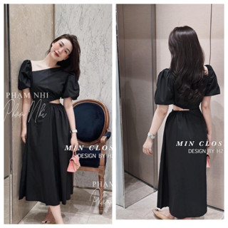 Đầm lụa nữ vai chéo tay phồng cắt eo siêu xinh,thanh lịch cho bạn gái mặc đi chơi