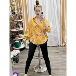 Set bộ áo somi lụa họa tiết gấu phối quần thun ôm tôn dáng cho nàng măc ở nhà thoải mái
