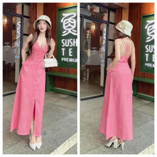 Đầm maxi nữ chất lụa cao cấp dây chéo lưng đính nút dài xẻ đuôi váy thời trang trẻ trung cho bạn nữ mặc đi chơi,dã ngoại