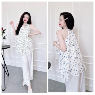Set bộ yếm hoa nữ cột nơ chất lụa cao cấp siêu sang,thanh lịch cho bạn gái mặc đi chơi,dã ngoại thoải mái,trẻ trung